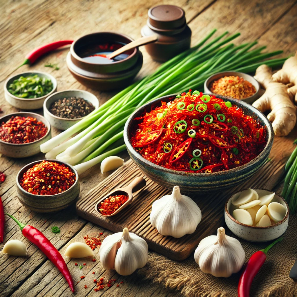 김장김치의 풍미는 양념에 달려 있으며, 각 재료의 비율과 배합이 중요합니다. 다진 마늘과 생강은 김치의 기본 풍미를 제공하며, 고춧가루는 색감과 매운맛을 더해줍니다. 고춧가루는 고운 것과 굵은 것을 섞어 사용하면 김치가 예쁜 붉은색을 띠면서도 매운맛이 적당히 조화롭게 나옵니다. 멸치액젓과 새우젓은 감칠맛을 높이는 중요한 요소로, 각 가정마다 젓갈의 양을 조절하여 자신만의 맛을 완성할 수 있습니다.