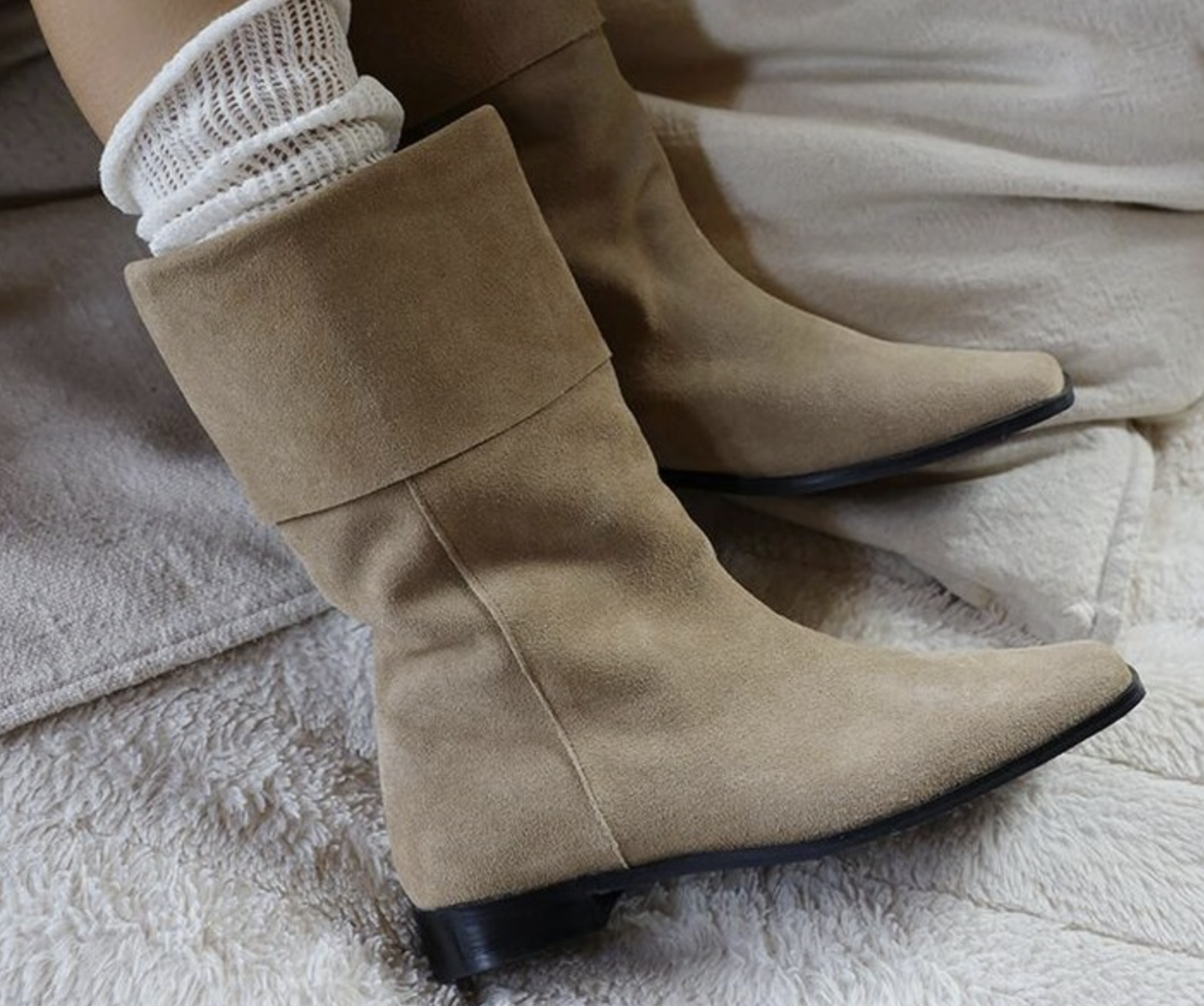 - 소재: 천연 가죽이나 합성 가죽을 사용한 폴딩 부츠는 내구성이 좋고 오래 신을 수 있습니다. 겨울철에는 방수 소재의 부츠가 실용적입니다.